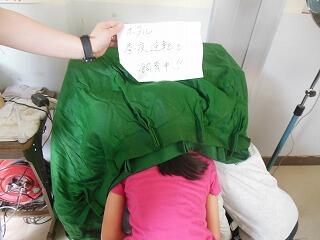 着ている服に空気を入れて,浮く方法を教わりました。浮袋代わりです。