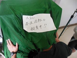 理科室前で,蛍を飼育しています。この時期は昼夜逆転をさせるために,夜はライトで照らし,日中は暗幕で囲んで光が入らないようにして育てているところです。