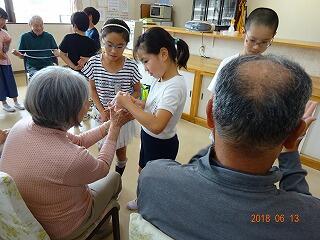 最近は少子高齢化が進み,子ども達の周りには高齢者が増えてきているはずなのに,高齢者と接する機会があまりありません。高齢者と接し,その生き方に触れることは4年生の子ども達にとって,これからの人生を生きていく上で,貴重な体験になったことと思います。また2学期にも交流させていただく予定です。