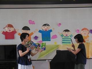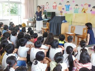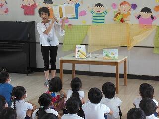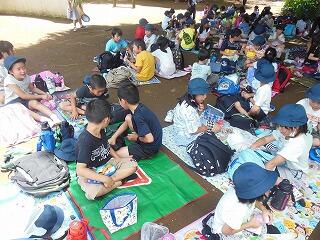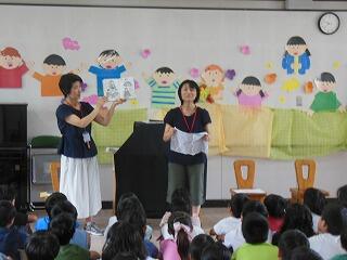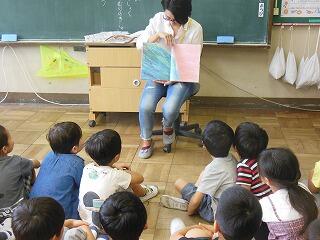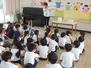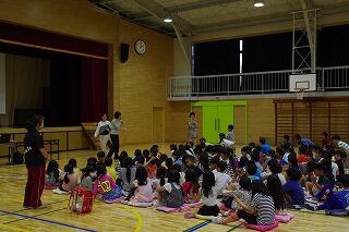 まず最初は図書館指導員さん達より,①寿限無 ②まんじゅうこわい ③たのきゅうのブックトークがありました。子ども達は寿限無にとても反応しておりました。