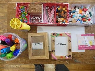 午後はゆっくり落ち着いて,写真立ての作成です。このような材料を自由に使って,世界に一つだけのオリジナル写真立てを作りました。