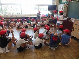柏踊りを教わった後は,運動会で踊ったダンスを披露しました。喜んでもらえて良かったです。子ども達も暑さを忘れ,一生懸命に踊っていました。
