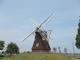 公園に着くと、まずは橋を渡って童話館や風車を見学しました。
