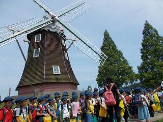 アンデルセン公園では風車も大きくて迫力があり,初めて見たという児童もいました。花々もきれいに咲いており,景色も楽しむことができました。