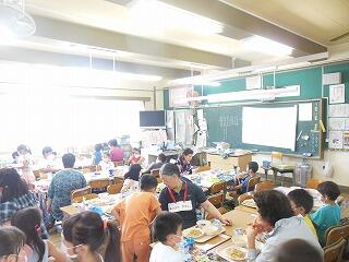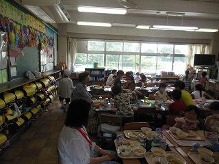 たくさん体を動かした後は,一緒に給食を食べました。