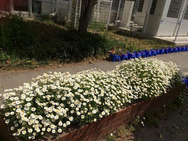 酒井根小学校の校庭にはきれいな色の花がたくさん咲いています。