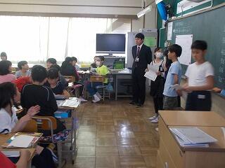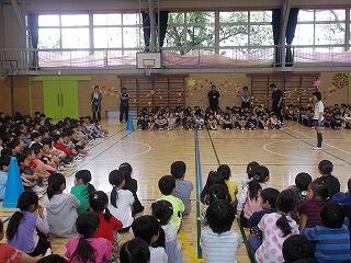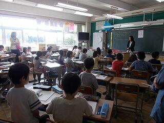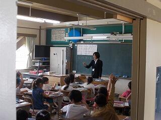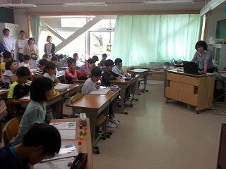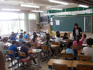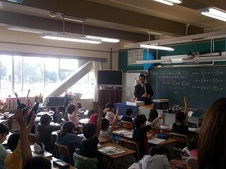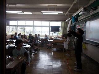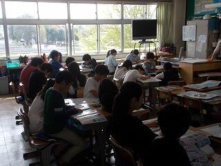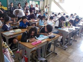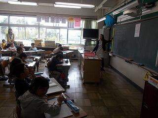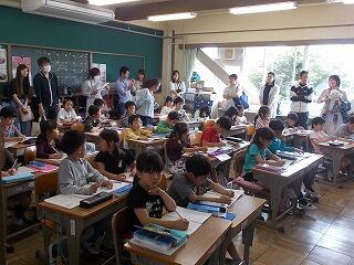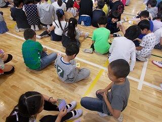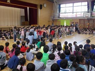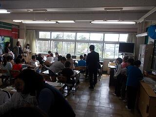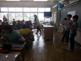 ウサギの名前は? ジャングルジムの色は? 一番人数が多い学年は? 等の問題が出されました。最後に全問正解の児童はその場に立ち上がりましたが,とても嬉しそうでした。酒小について詳しく知ることができましたね。