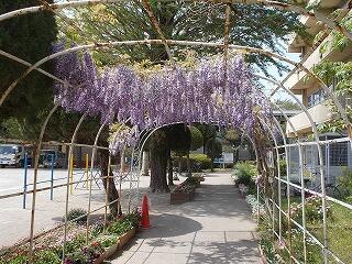 なかよしトンネルの上には綺麗な薄い紫色の藤の花が咲いています。