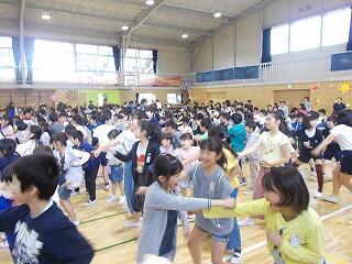 全校児童がノリノリで汗をかきながら,踊っていました。全校が一体となる素晴らしい様子が見られました。この踊りはどの学年も大好きです。