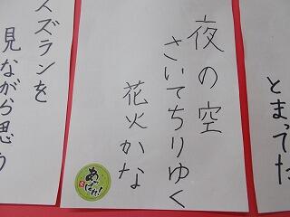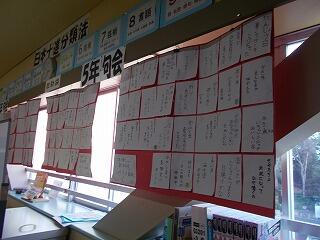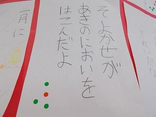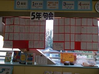 国語の学習で俳句・短歌を学習します。その発展として,最終的には各自が季語などを意識しながら作品をつくり,学級などで紹介をし合います。それが終わった作品は,図書室に掲示してあります。