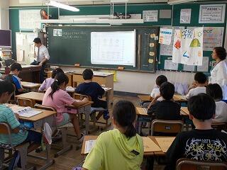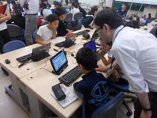 プログラミング教育の実証授業がありました。プログラミング教育の目的は,論理的思考力を身に付けることです。ICTアドバイザーの方にも補助で授業に入ってもらい,その授業の様子を柏市教育委員会の先生方などにも見ていただきました。