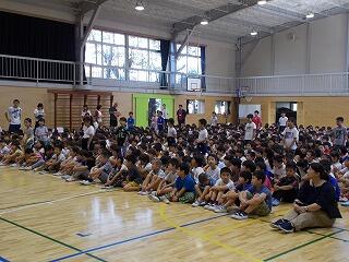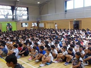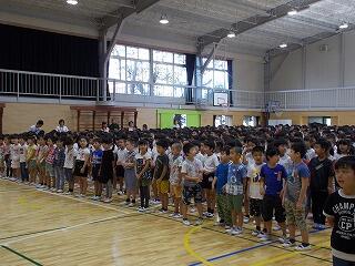 選手にはなれなかったけれども,陸上部に所属している児童は,これだけおります。その場に立ってもらいました。選手になれなくても,自分の目標に向かって,継続して頑張ってきた経験は,とても素晴らしいことです。自信をもってほしいと思います。