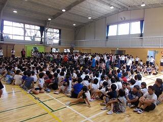 全校朝礼の後に陸上選手を励ます会が行われました。