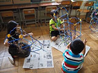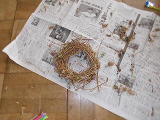 生活科の学習の中で,5月から大切に育てたあさがおのツルを使ってリースを作りました。