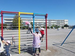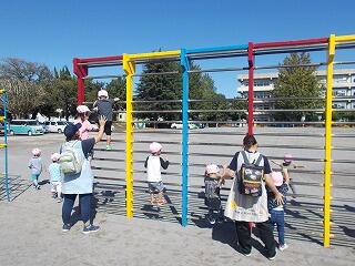 酒井根保育園の園児が,午前中に酒小の校庭(遊具)に遊びに来ました。とても穏やかな天気で,園児も笑顔いっぱいで楽しんで帰りました。是非,またいつでも遊びに来てくださいね。