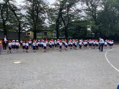 校庭に出て並び,準備運動をしました。すぐに並ぶことができ,成長を感じました。準備運動の後,クラスごとに測定しました。