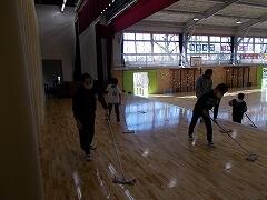 明日の卒業式前日準備に先駆けて,本日の6校時に体育館の清掃をしました。体育館の入り口やギャラリーに溜まったホコリをとったり,ステージやフロアの床をきれいにしたりしました。