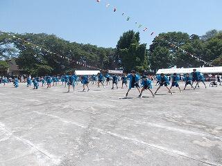 延期していた運動会の全体練習の3回目が行われました。だいぶ気温が高かったため,全校児童一斉に水分休憩も挟みながら行いました。今日は閉会式や応援合戦を中心に行いました。