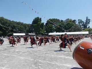 はっぴは手作りで,背中には自分の好きな漢字が書かれています。世界に1つだけのはっぴです。踊りも息が合っていましたね。体形移動も素早かったです。