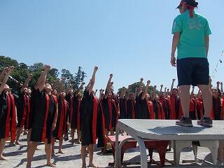 今日は主に開会式の流れを通して確認をしていきました。とても日差しが強く,少し暑いくらいの天候でした。