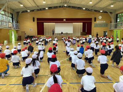 今日は,「フレーフレー〇組」「がんばれがんばれ〇組」のかけ声,「オー」のポーズを覚えました。はじめは,大きな声を出すことが恥ずかしそうな様子でしたが,だんだん元気いっぱいの声で応援することができるようになりました。これからも応援練習は続きます。本番に力強い応援ができるように頑張ります。