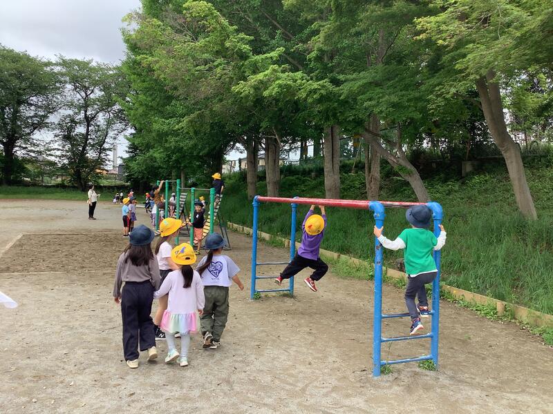 2年生が考えてくれた「だるまさんがころんだ」「おにごっこ」「へびじゃんけん」「鉄棒あそび」…などの遊びをグループごとに遊びました。ルールを守って仲良く遊べていました。