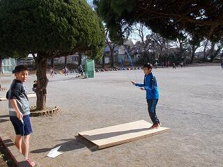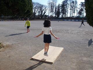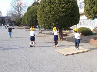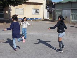 休み時間の校庭の光景です。今月の生活目標は,「外に出て元気に遊ぼう」となっていますが,縄跳びを使って元気に遊んでいました。体育委員会が縄跳びジャンプ台を出してくれ,とても大活躍しています。