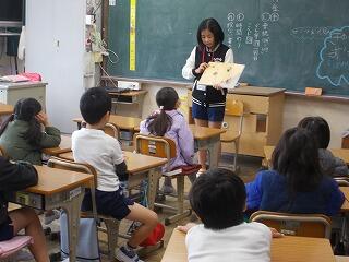 高学年の子ども司書の児童らが,1年生と2年生とあおぞら学級のクラスで朝自習の時間を使って,読み聞かせをしてくれました。