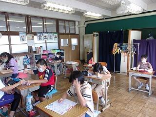 校舎を見ると,どのクラスも窓を開けて,カーテンを閉めています。