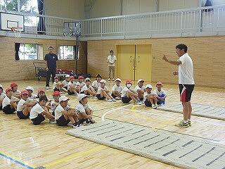 全校朝礼の後に6/6のミニバス教室に出る選手を励ます会が開かれました。どの児童も気合が入っていました。その反面,少し緊張した様子も見られました。