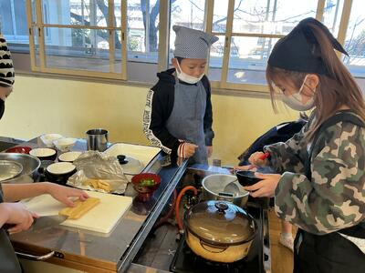 味噌汁チーム: 煮干しから丁寧にだしを取りました。大根やネギを切る作業は、包丁の使い方に慣れていない友達を、経験者がサポート。具材を煮るタイミングや、味噌を溶く役割を分担し、味見をしながらみんなで協力して味を調えました。