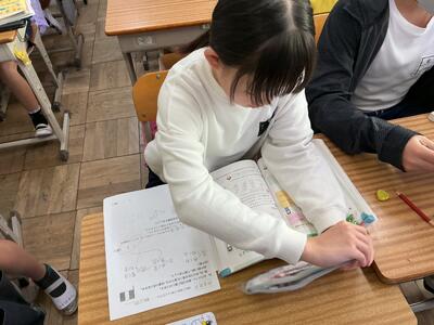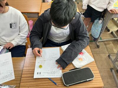「樹形図」の書き方を学びました。「樹形図を書けば、簡単じゃん!」「今までの学習で一番できる!」と話している声がありました。休み時間にも、苦手な問題を克服するために、補充のプリントに熱心に取り組む姿も見られるようになりました。自ら学習する姿に、高学年らしさを感じています。