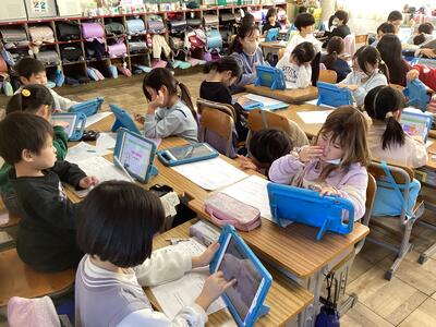 生活科では、来週の町探検発表会に向けて、スライドの制作や、原稿を書くことを、グループごとに行っています。場所・もの・人について発見したことをまとめています。探検を通して、気づいたことをみんなに伝えようと、意気込んでいます。ぜひ、発表会にお越しください。