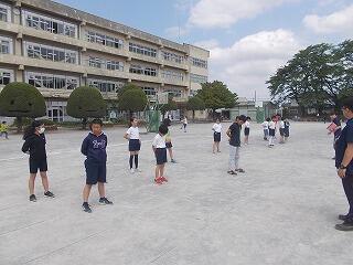 なかよしタイムには,校庭で開会式の練習を行っていました。