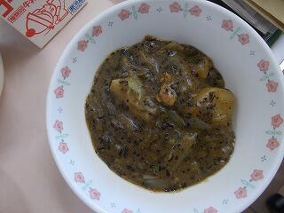 給食でひじきが入った「ブラックカレーライス」が出ました。名前の通りに真っ黒でしたが,味はとても美味しかったです。