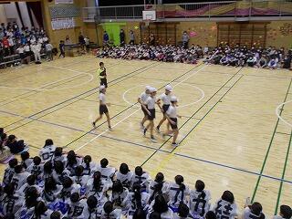 「がんばれ6年生」をテーマに元気に運動会で踊った南中ソーランを披露しました。元気なかけ声とはっぴの背中の文字が光りました。