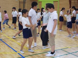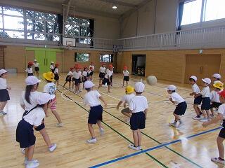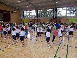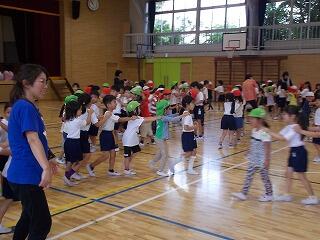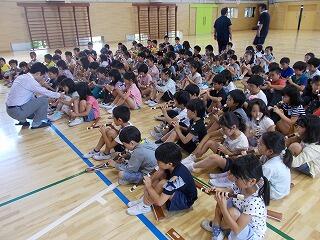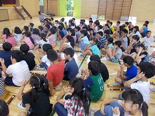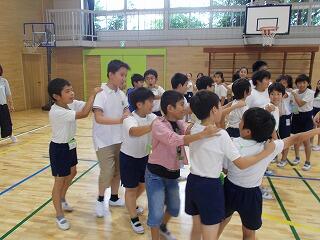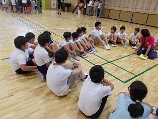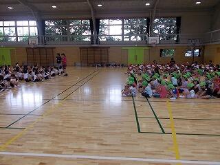 次は,いよいよ体育館で5年生全員と交流会です。