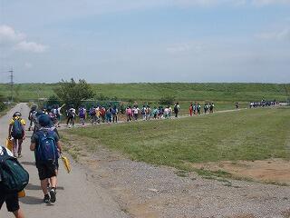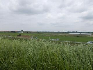 布施弁天を見学した後は,歩いてあけぼの山農業公園に行きました。まずは,土手に上がり,利根川の土地利用を確認しました。