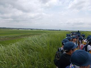 土地の様子を学びました。なぜ周りに田んぼが広がっているのかも学びました。きれいな田園風景です。