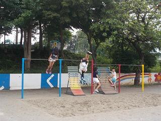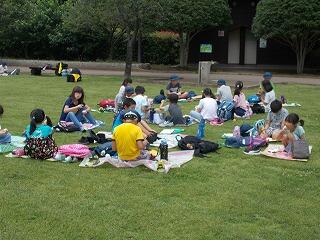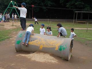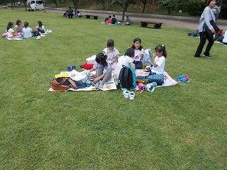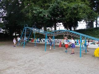 美味しいお弁当を食べた後は,公園でフリータイムです。ミニアスレチックをしたり,ターザンをしたり,池の鯉を見たりしながら楽しんでいました。