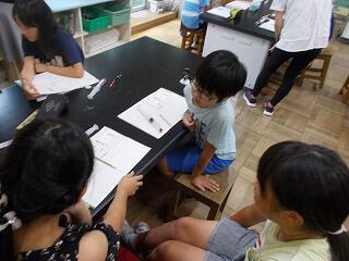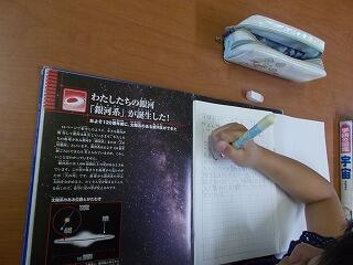 子ども達は,星座や生き物や天気など,興味をもったものについて調べておりますが,せっかくの長期の休みなので,調べたことを実際に親子で体験できると,より深まった勉強になると思います。調べた星座を夜に見てみたり,調べた生き物を実際に捕まえてみたり,調べた音楽家の曲を聴いてみたりなど,ぜひ体験につなげることができれば効果的だと思いますので,よろしくお願いします。