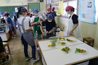 先日,6年生の家庭科で「朝食にあうおかず」をテーマに調理実習を行いました。子どもたちは,栄養バランスを意識しつつ,朝の忙しい時間に作ることのできるおかずを考えました。調理実習では,グループ内でしっかりと分担をして,協力しながら調理することができました。