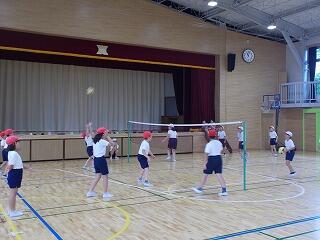 4年生は,体育でキャッチバレーボールをしていました。普通のバレーボールとは違い,相手のコートにボールを入れる前にキャッチができるという動作が入るため,簡易的なルールとなり,運動が苦手な児童も楽しく活動ができるスポーツです。