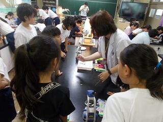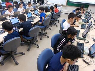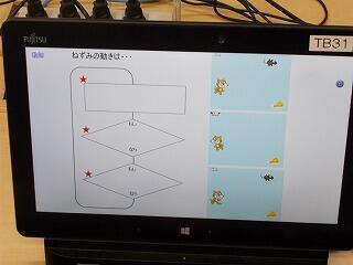 講師の先生が画面上で命令を与え,ネズミが動くと,子ども達からは歓声が上がりました。