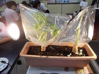 6年生は,理科の葉の表面の様子や蒸散の学習をしていました。