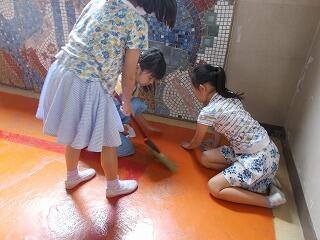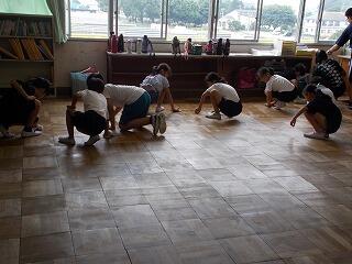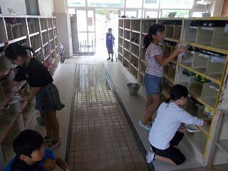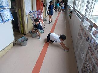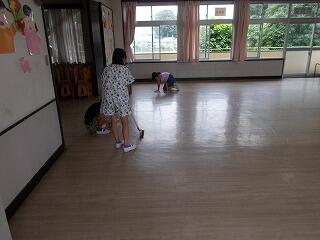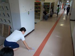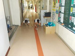 今日は,湿気もあり廊下や階段なども滑りやすい状態でしたが,そうじの時間に一生懸命,床をふきながら掃除をしておりました。