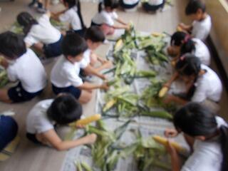 自分達の手でむいたトウモロコシが給食に出るということで,1年生達は待ち遠しいのではないでしょうか。我々も待ち遠しいです。またその様子をお知らせいたします。