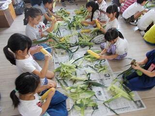 1年生 トウモロコシの皮むき