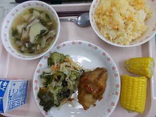 給食に今日1年生が皮むきしたトウモロコシが出ました。