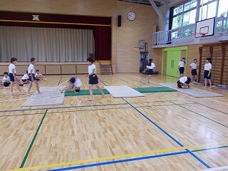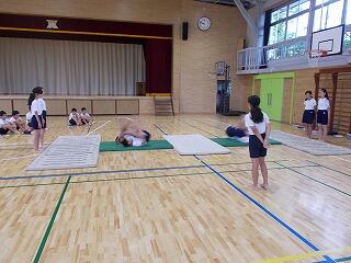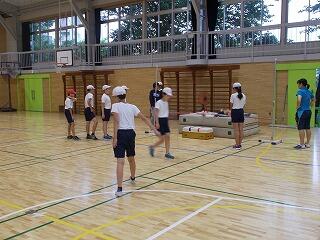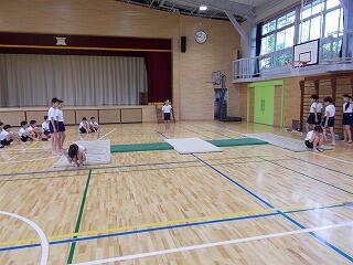今日こそは,外で久しぶりに活動できると思い,校庭で各種目ごとに場の準備を行っていると,急にまた雨が・・・ということで,室内で種目ごとにできることを行いました。梅雨明けが待ち遠しいです。